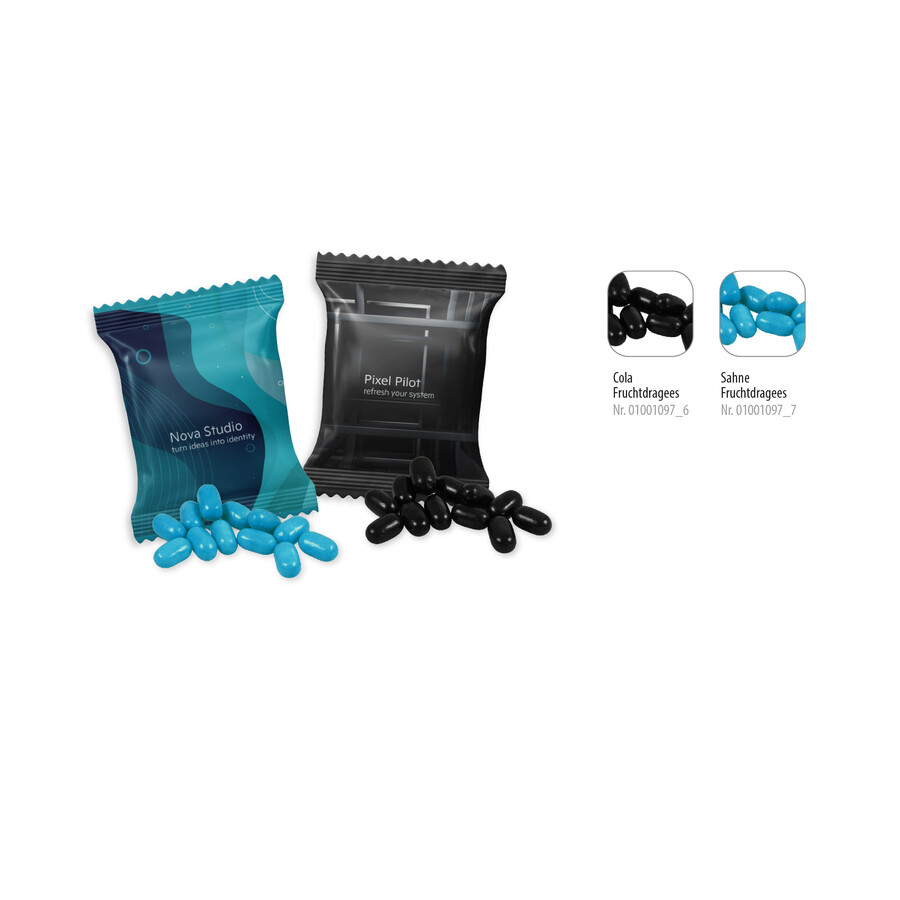 Configure nowFruity enjoyment - these small dragees have a great taste. They are available in four colours and fruity flavours, assorted or as a colourful mix.
